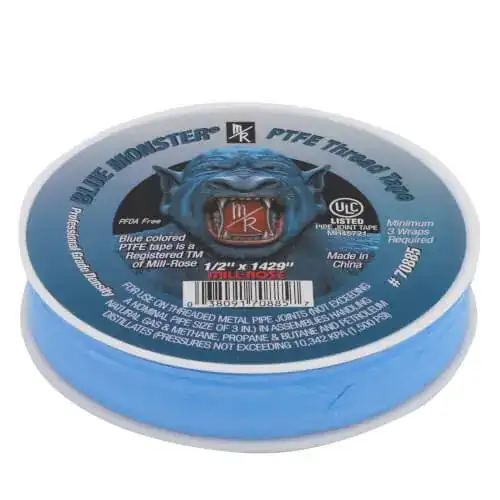 Blue Monster 70885 is designed for professional installers who require a full-density PTFE sealing tape for general-purpose piping systems. Its higher mass per unit area offers better sealing performance on larger thread forms and in systems subject to vibration or thermal cycling. For fuel gas applications, use only tapes explicitly marked and rated for gas service.