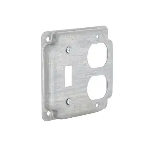 Commonly installed in workshops, mechanical rooms, basements, and light commercial facilities, this exposed cover type simplifies field access for receptacle and switch service. Its dual-function layout is ideal where control and power access are needed in a single location, such as lighting and auxiliary equipment zones.