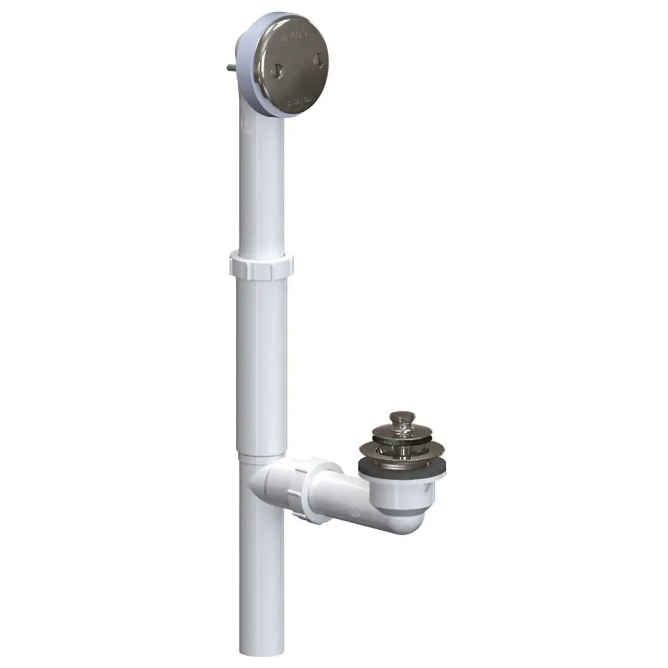 The Watco 500-TQ-PVC-CP-EXT 5 is a trip lever bath waste designed for use in standard residential and commercial bathtub installations. Featuring a PVC body and chrome-plated metal components, this assembly supports efficient drainage and provides corrosion resistance in exposed areas. The unit is compatible with tub heights ranging from 14 to 16 inches and is engineered for both cast iron and acrylic/plastic tubs.