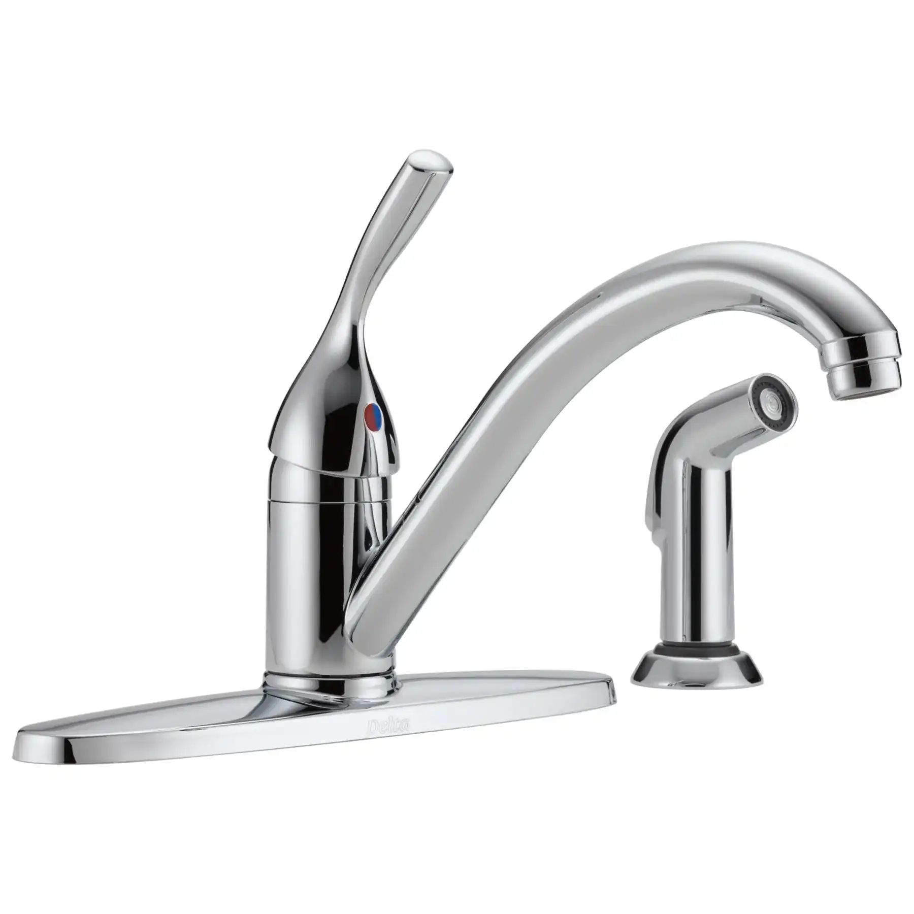 Delta 400-DST, Single-Handle Kitchen Faucet with Spray, 8″ Center, Chrome, 1.5 gpm, Classic Collection
