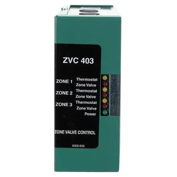 This control is commonly used in hydronic systems with baseboard, radiant, or panel heating applications where multiple zones are required. The ZVC403-4 interfaces with conventional or programmable thermostats and supports both power open/power close and power open/spring return zone valve designs.